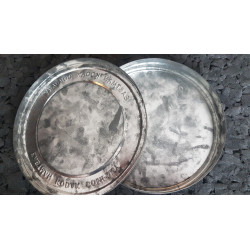 In het midden schade van vele stickers. Authentiek verweerd. 2e hands