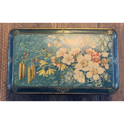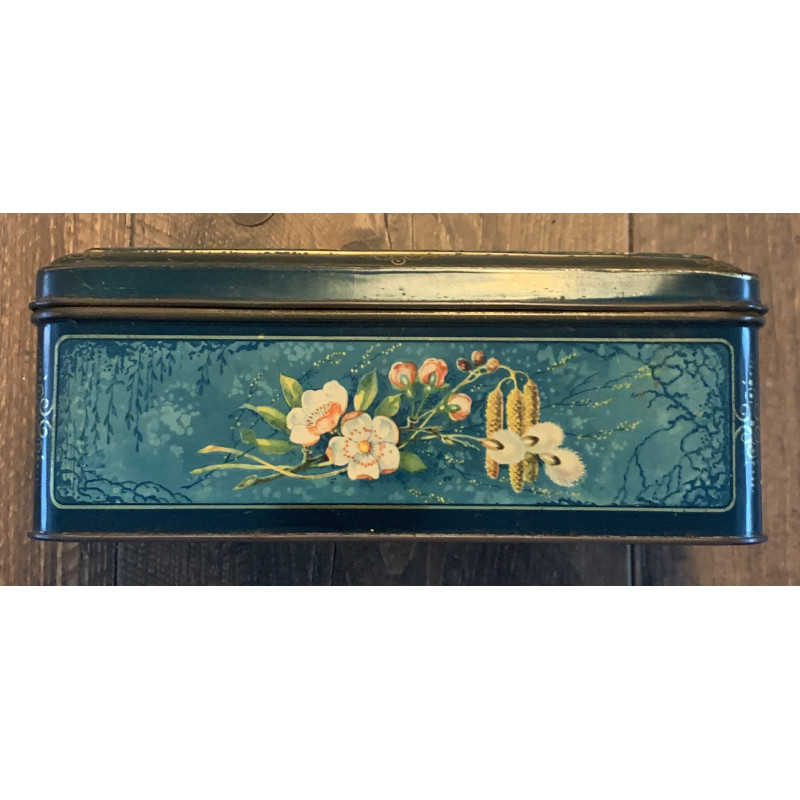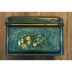 Vintage koektrommel bloemen/blauw