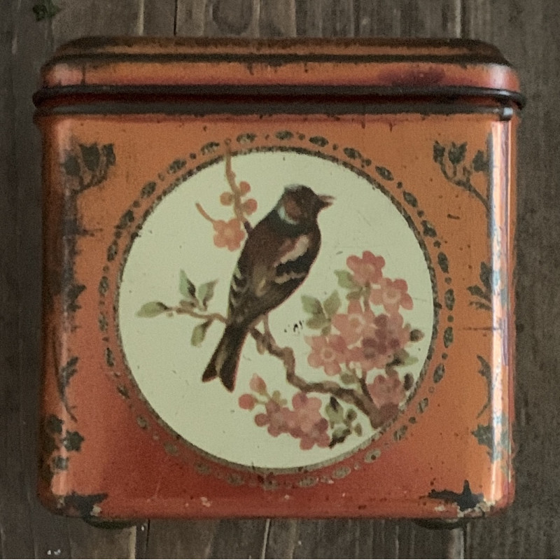 Vintage blikje vogels